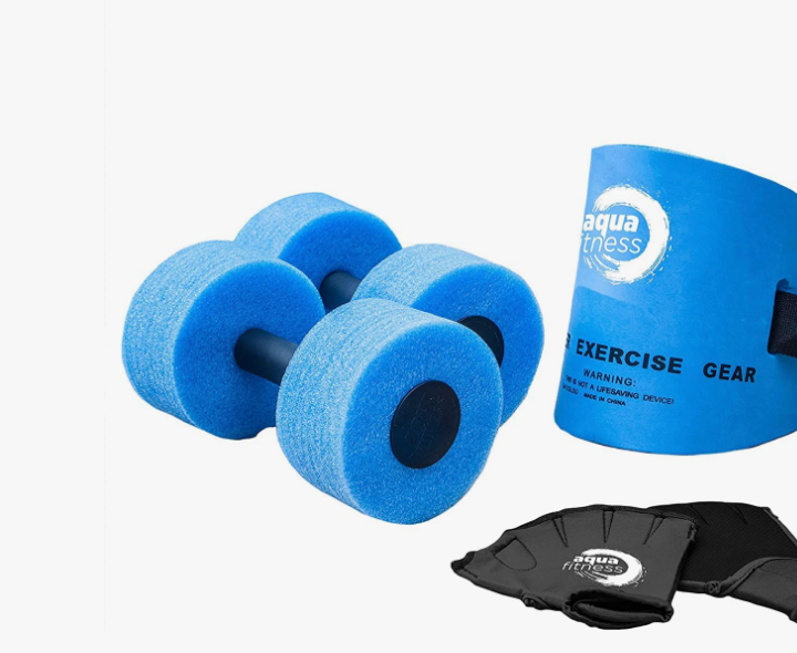 - Équipement d'exercice aquatique : ensemble de 6 pièces pour un entraînement à faible impact ; comprend une ceinture de natation pour adulte pour un tour de taille de 50,8 à 152,4 cm avec sangle et boucle réglables, des haltères, des gants de résistance et un manuel (français non garanti)
